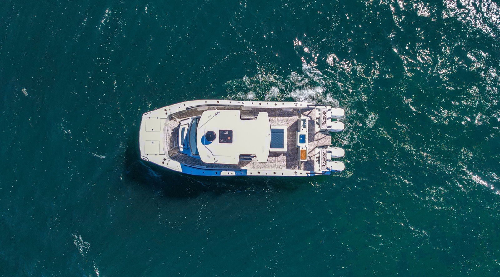 Stepped hull technology for superior efficiency and soft riding in rough seas.